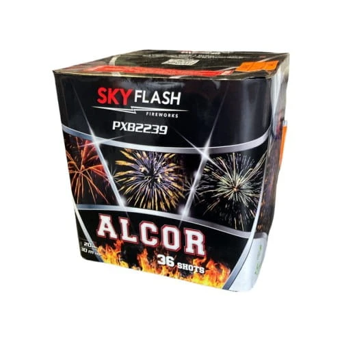 Wyrzutnia wykorzystuje kaliber 20 mm, pozwalający uzyskać wyraźne, kolorowe rozbłyski o różnorodnych formach. Wśród efektów znajdziemy m.in. intensywne komety, eleganckie peonie oraz szeroko rozchodzące się rozpryski, które płynnie przechodzą jeden w drugi, tworząc spójny i atrakcyjny wizualnie spektakl. Dzięki odpowiedniemu tempo strzałów wyrzutnia Alcor buduje narastające napięcie, kończąc pokaz efektownym finałem.