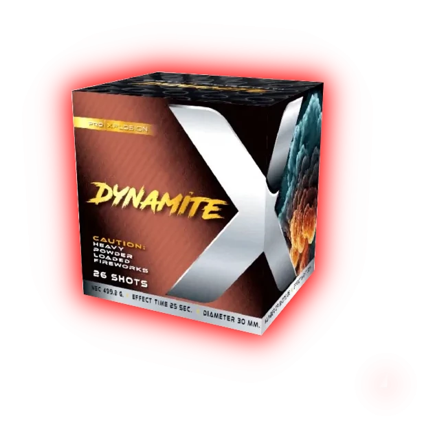 Dynamite to wyrzutnia klasy premium od Pyroshine, stworzona, aby jednym zestawem zapewnić dynamiczny i zapadający w pamięć pokaz. Zawiera 26 strzałów o kalibrze 30 mm, co przekłada się na mocne wyrzuty i efekty wizualne widoczne nawet z dużej odległości.