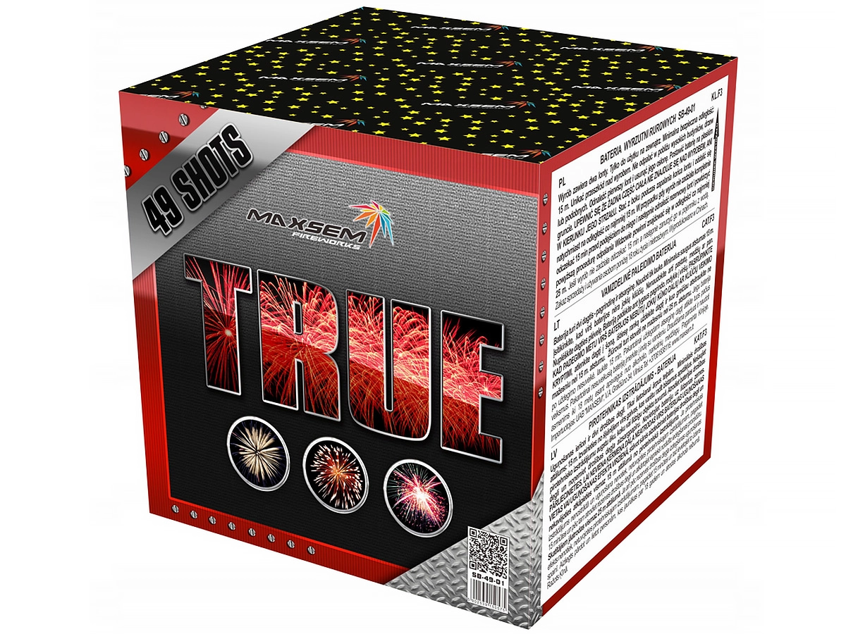 Dzięki starannie zaplanowanej sekwencji oraz dużej mocy ładunków TRUE prezentuje się niezwykle profesjonalnie, dlatego doskonale sprawdzi się podczas sylwestra, wesel, imprez plenerowych, festynów oraz eventów firmowych. Każdy strzał buduje napięcie, a całość układa się w harmonijną, płynną i spójną opowieść świetlną, która przyciąga wzrok i pozostawia niezapomniane wrażenia.